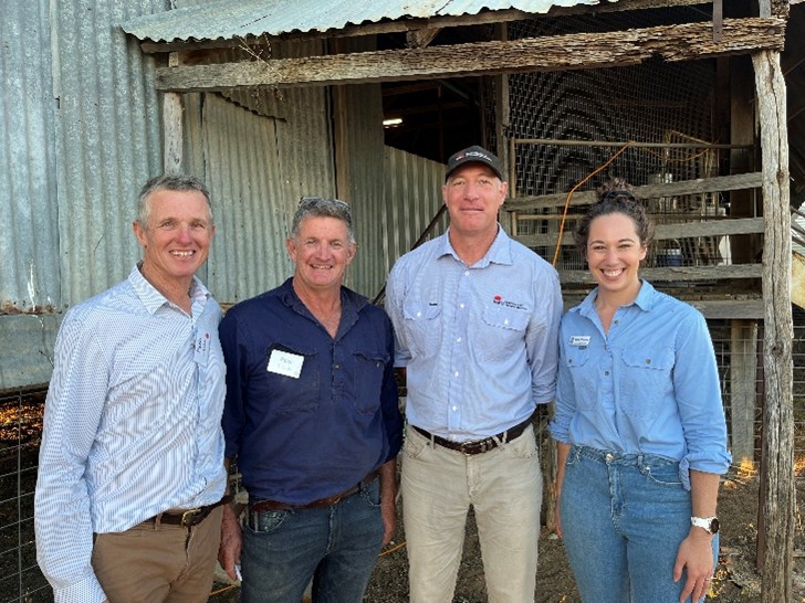 Image 1 David Counsell (left) was instrumental in the development of this PDS, engaging Ilfracombe producer Peter Thomas and Dr Gordon Refshauge (NSW DPIRD). The PDS supported by local DPI staff Millie Sheales (right) and Rhonda Toms-Morgan from ConnectAg (not pictured).